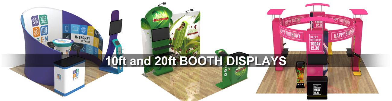 Modular and fully immersive tension fabric tradeshow kit. Build brand awareness with custom booth designs.
