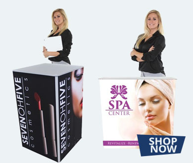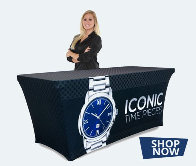 Table throws are a great addition to your trade show booth and are sized to fit standard 4ft, 6ft, and 8ft tables. Available in full graphic prints.