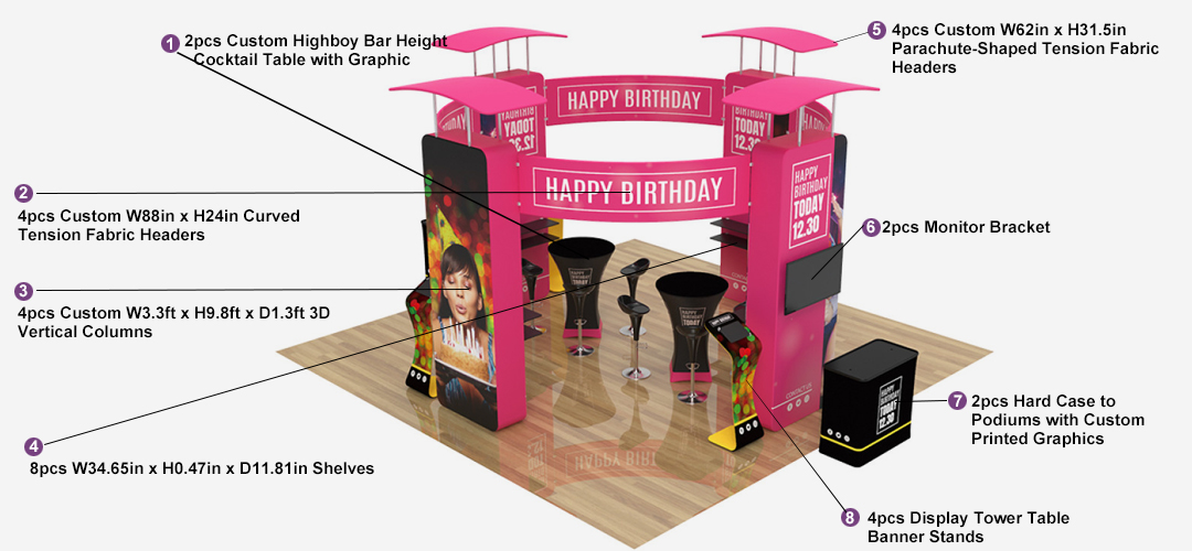 • Designed for 20' x 20' tradeshow stalls