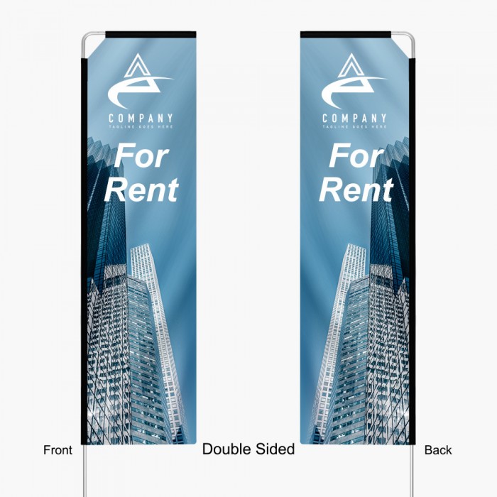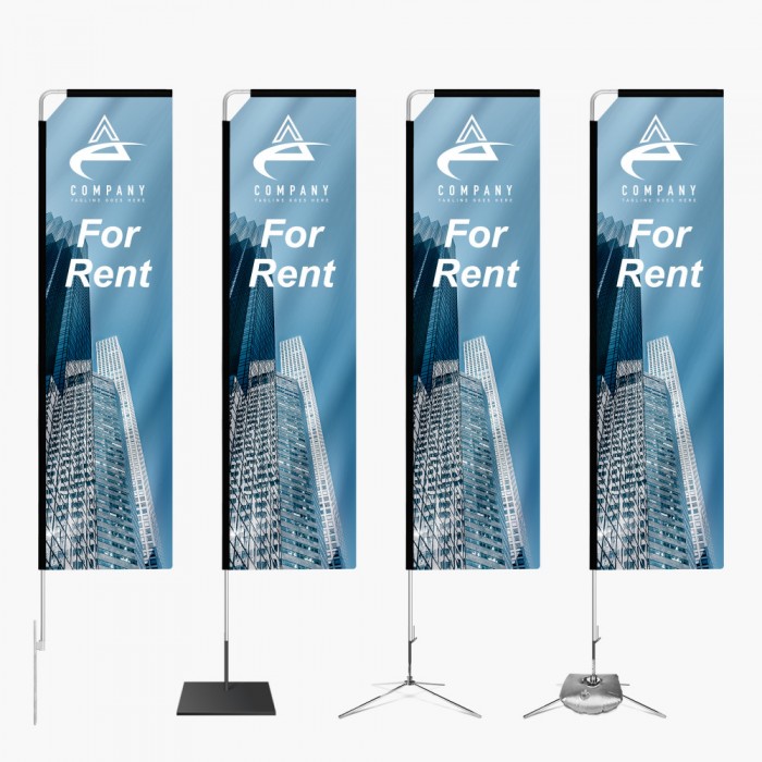 Rectangle flags offer a massive full color dye sublimated graphic, easy to design for shape and with optional base accessories they can be used indoors and outdoor.